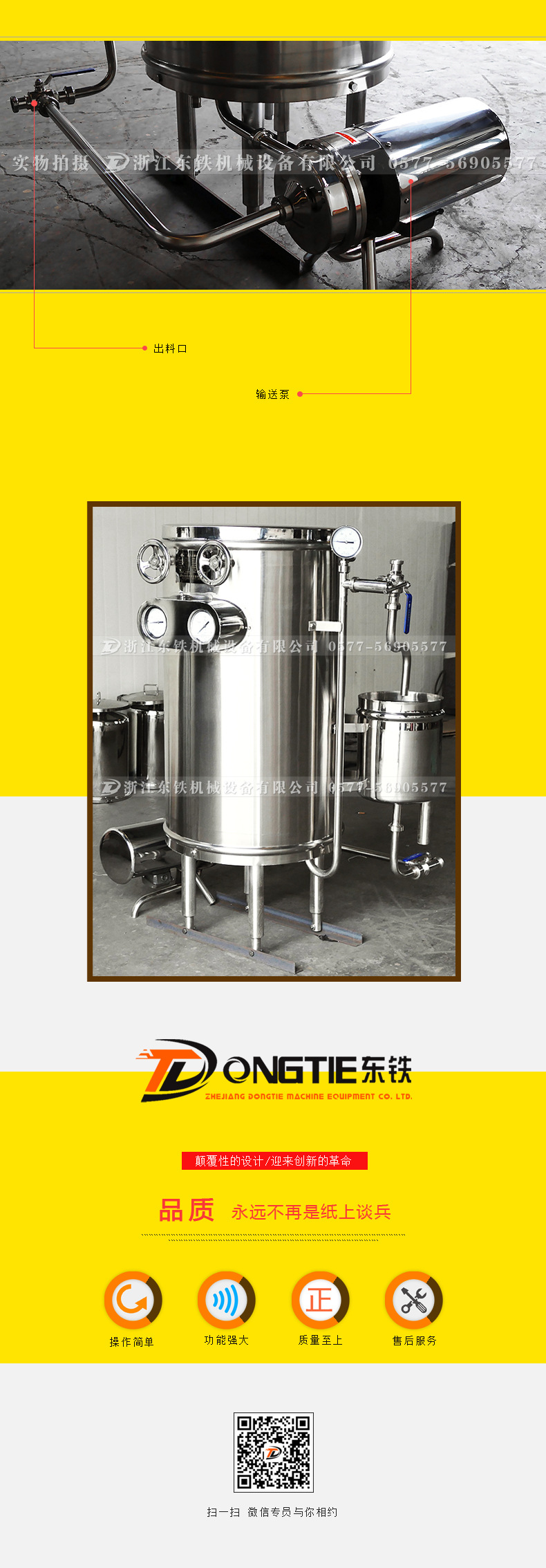 4、与离心泵或高压均质机串联使用,应用范围很广,适宜于高粘度物料的灭菌。