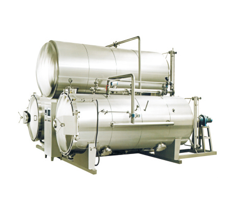 全水静置式杀菌锅是通过引入压缩空气实现反压杀菌。如冷却需在锅内进行,须用水泵打入锅顶部的喷水管(或采用水循环系统)。在杀菌时,由于加热使温度升高,包装袋内的压力会超过袋外(在锅内)的压力。因此,为了避免杀菌时包装物内增压而损坏,必须施加反压力,即是压缩空气通过锅内增加压力,防止包装物损坏,