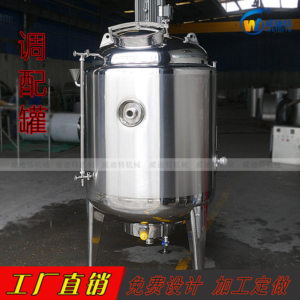 调配罐又名拌料缸、混料缸,有节能、耐腐蚀、生产能力强、清洗方便、结构简单等优点。主要用于混合乳制品和糖等元素,混合后使用各种化学物质进行均匀混合。它是乳制品,饮料和制药厂必不可少的设施。材料是SUS304或316不锈钢。