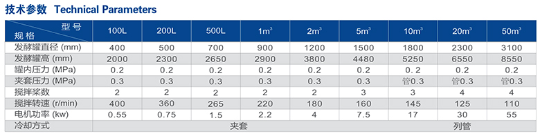 Tank body material: 316L or 304 stainless steel; tank body designed pressure: 0.3MPa; jacket designed pressure: 0.35MPa;